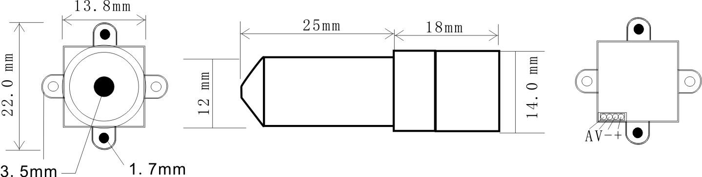 PIN1->Red DC5V PIN2->Black GND PIN3->Yellow VIDEO OUT PIN4->White AUDIO OUT |