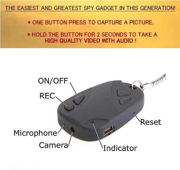 With car alarm designed, recording gets more easier! Are you an active news blogger ,citizen journalist, or investigator? Want to keep an audio/video record of those important private meetings for later review? Here is the answer - our Car Key Camera will allow you to record these without intimidating anyone. This tiny video camcorder lets you record AVI format files that you can later transfer to your computer for viewing and archiving purposes.